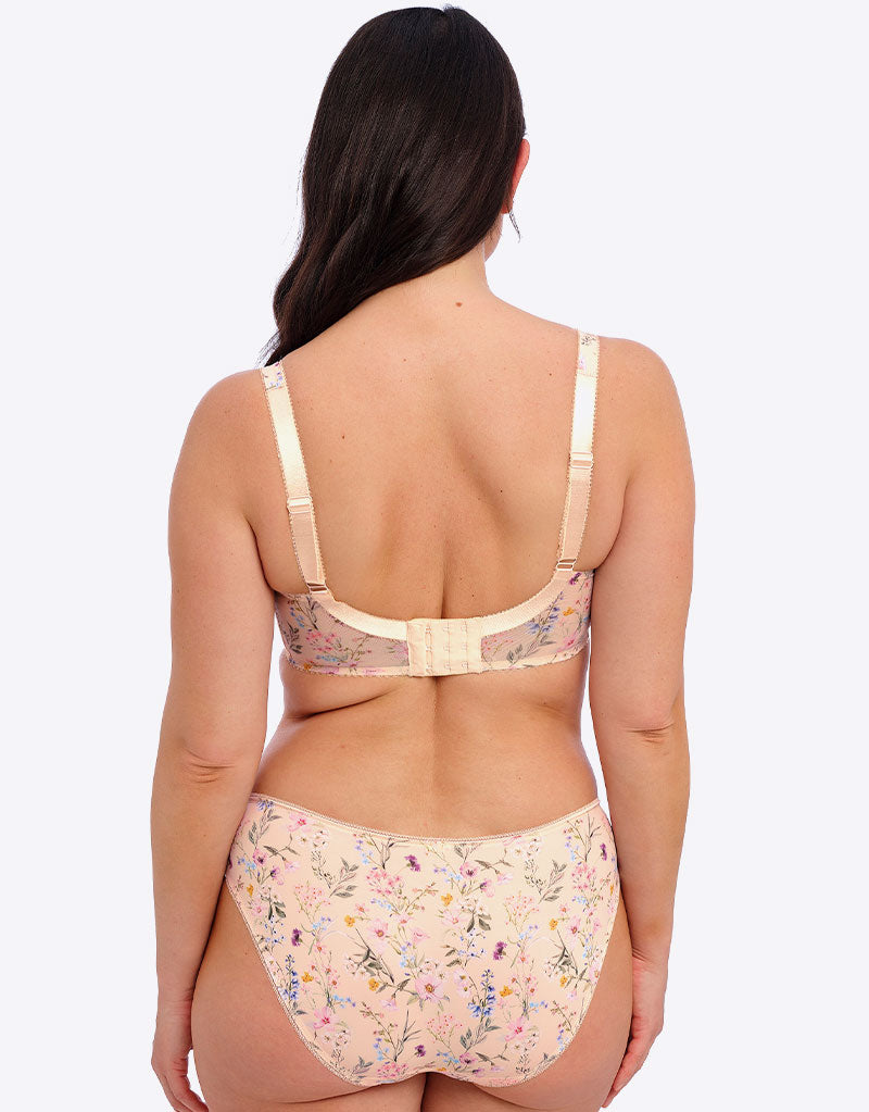 The Fantasie Pippa side support bra is beautiful in a Summer Garden inspired floral print with delicate blooms on a peachy beige base. Trimmed with lace detail to the top of the 4-part, fuller coverage cups, while side panels give great forward shape and uplift. Designed to give a secure and supportive fit that keeps your bust in place for all day, everyday comfort.