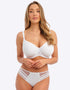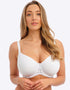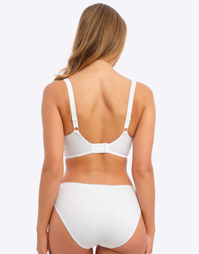The Fantasie Rebecca spacer bra showcases a lightweight and breathable seamless foam cup that gives a smooth, rounded shape under clothes without adding bulk or volume to your bust. A fuller coverage shape and wide wires ensures everyday security and comfort, in a crisp white. Trimmed with pretty geometric embroidery detailing along the cradle to finish the look.