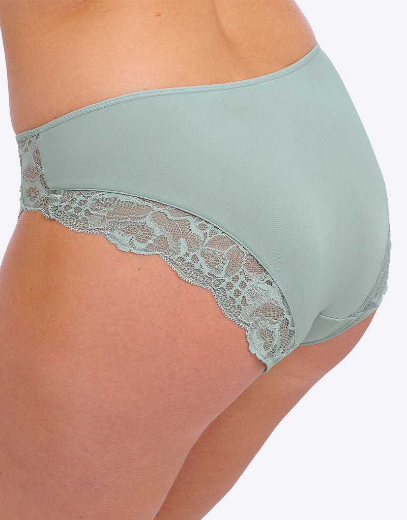 The Fantasie Reflect brief is made from soft handle fabric for a luxurious all day feel, in a beautiful Mist Blue colourway. Trimmed with delicate stretch lace to the hip and back leg edge for a comfortable fit, in a classic knicker cut for moderate coverage.