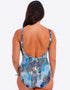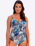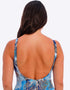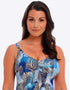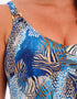 The Fantasie Seraya Sands swimsuit is gorgeous in an abstract blend of animal prints in denim blue tones, accentuated with pops of bronze. A v-neckline gives a subtle plunge shape with concealed underwire cups to offer perfect D+ support while remaining sleek and stylish. Drawstring ties at the hips allow you to adjust the leg height and coverage to suit your preference, while a scooped leotard back is easy to wear and gives a classic swimwear look.