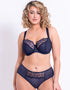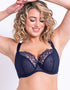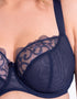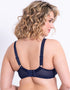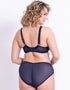 A favourite amongst customers, our Flirtelle Alice balcony bra is back in a midnight navy hue. With sheer mesh cups for a touch of sass on an everyday style, the structured three part cups offer great support and a rounded shape with everyday coverage. Finished off with swirled embroidery to the top cup for a feminine style.