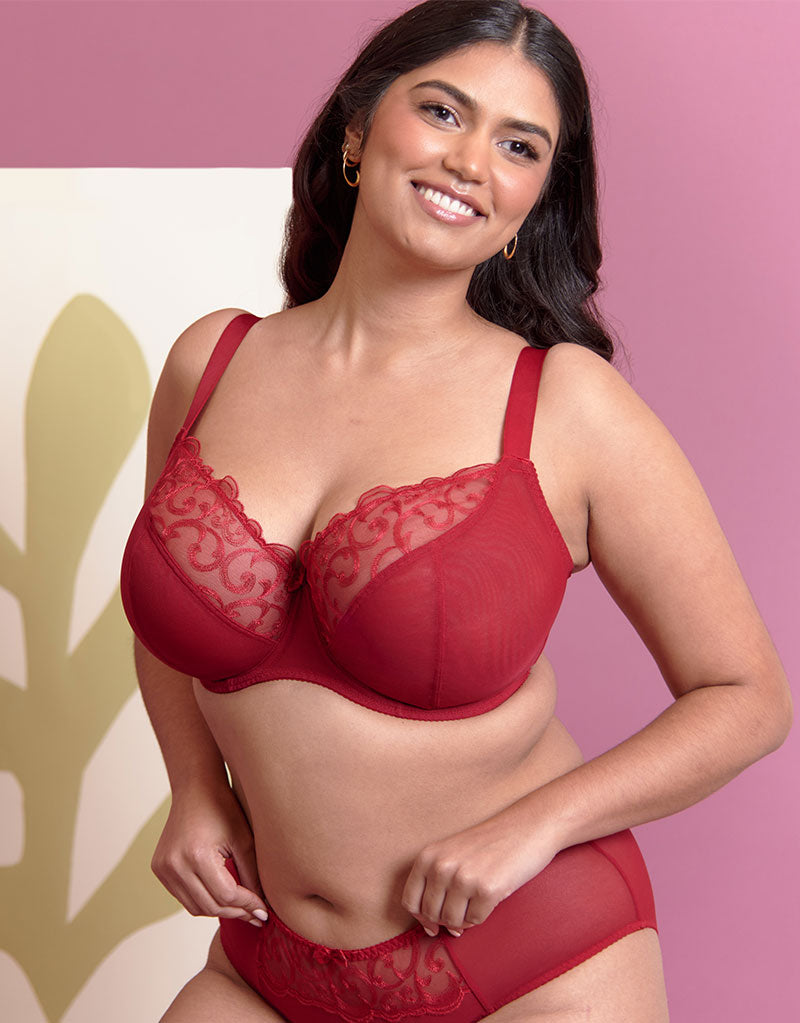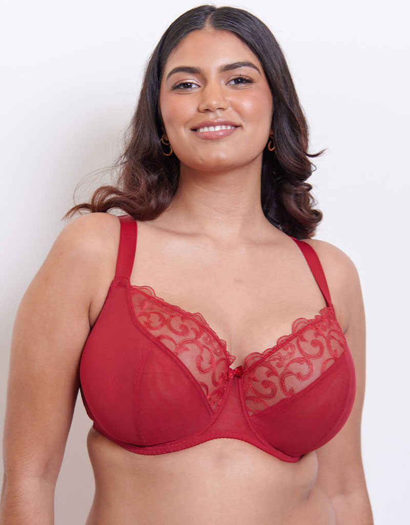 The Flirtelle Alice balcony bra is back! This time in a bold poppy red, perfect for adding a pop of colour to your top drawer. Lightweight but supportive, this everyday bra is made with a supportive 3-piece balcony cup, using an extra layer of mesh in the bottom cups to add extra uplift with a projected shape. Wide, non-slip 22mm wide shoulder straps ensure all-day, everyday comfort combined with a powermesh underband.