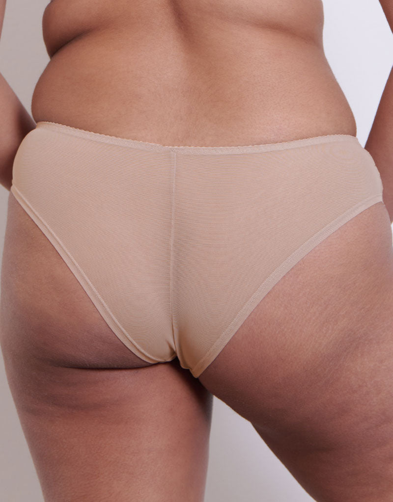The Chloe brazilian brief from Flirtelle is a perfect addition to any top drawer in a Light Fawn colourway. Soft mesh and stretch lace panels offe a comfortable fit, cut in a classic shape that offers everyday comfort with a little less rear coverage.