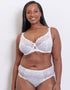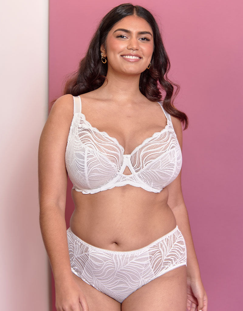 Refresh your bra-drobe with our Flirtelle Elise balcony bra in a fresh white hue. This everyday option is here to elevate your daily lingerie with its trendy zebra effect lace. Offering a classic everyday shape with the balcony cut, this 3-piece cup has a stretch lace top section for ease of fit, perfect for those with a asymmetrical breasts and also for dealing with breast fluctuations throughout the month. Finished with lace detail at the strap apex, and to the cradle, for a cohesive style.