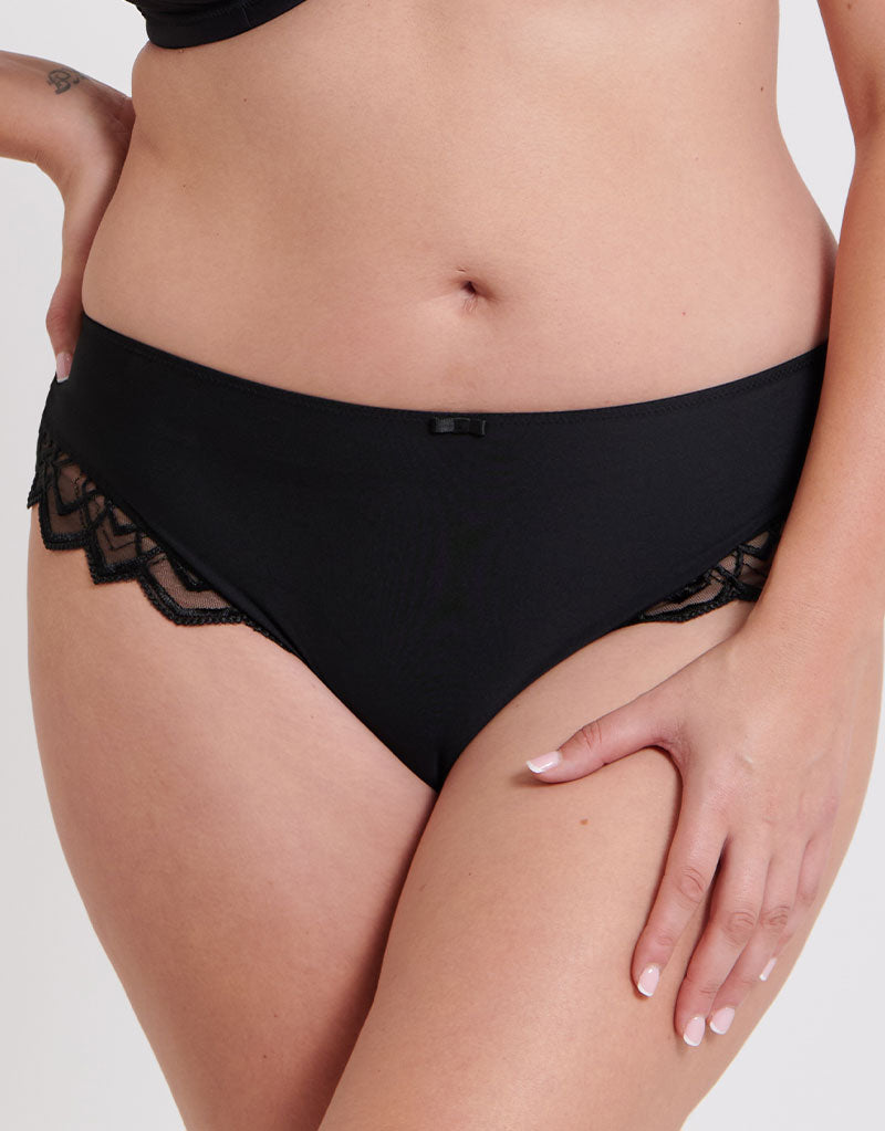 The Flirtelle Emilie Deco classic brief makes everyday effortless in timeless black. With a fresh Art Deco inspired embroidered trim to the leg edge, this full brief shape offers good coverage and total comfort in soft microfibre fabrics.