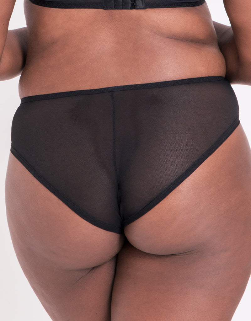 Flirtelle's Hayley brief offers a low rise, moderate coverage fit in soft mesh. The classic brazilian cut ensures all day comfort, with a slightly cheekier rear shape - the perfect knicker drawer addition in timeless black!