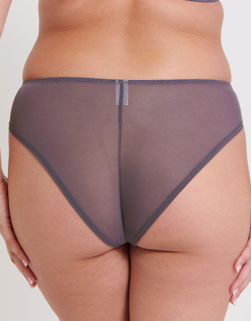 Flirtelle's Isla brazilian brief is gorgeous in a cool Twilight Grey, offering a stylish twist on neutral colours. Made from soft mesh with a feminine leaf-inspired design to the front panel, this lower coverage knicker still offers maximum comfort with a cheekier bottom cut.