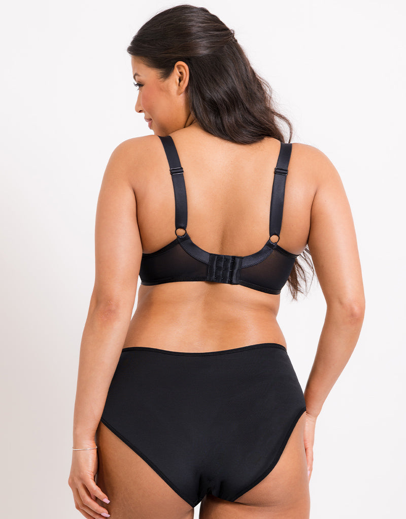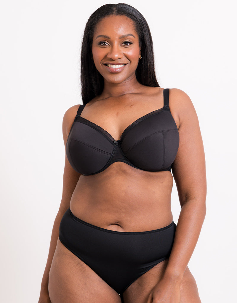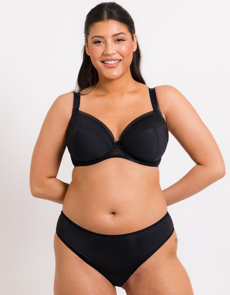 Say hello to Josie, a new plunge bra from Flirtelle! This everyday, simple but stylish option features opaque cups made from a soft microfibre in a 3-part shape for a comfortable fit. Trimmed with a soft picot elastic on the neckline and subtle shimmer edging, it makes for a perfect no fuss, no frills reliable and supportive bra.