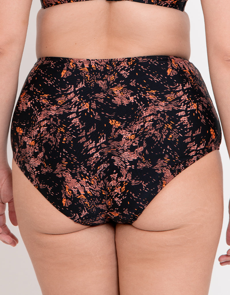 Complete your swimwear look with the Flirtelle Maya Bay high waist bikini brief. This higher rise, fuller coverage bikini bottom is stylish in a brown and black print, offering a comfortable fit and effortless holiday vibes.