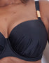 The Flirtelle Maya Bay padded balcony bikini top is supportive, stylish and comfortable in classic Black. Foam lined cups maintain their shape both in and out of the water, with underwire to ensure full support for fuller busts - perfect for any holiday destination!