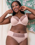 The Flirtelle Riley balcony bra is here in a beautiful blush pink. A 3-part cup offers perfect everyday fit and shape, made from non-stretch mesh with a buttery soft microfibre outer layer that keeps it smooth, and provides an opaque finish for modesty. This soft pink is perfect for everyday, and modern stripe embroidery on the top cup keeps it feeling light and fresh.