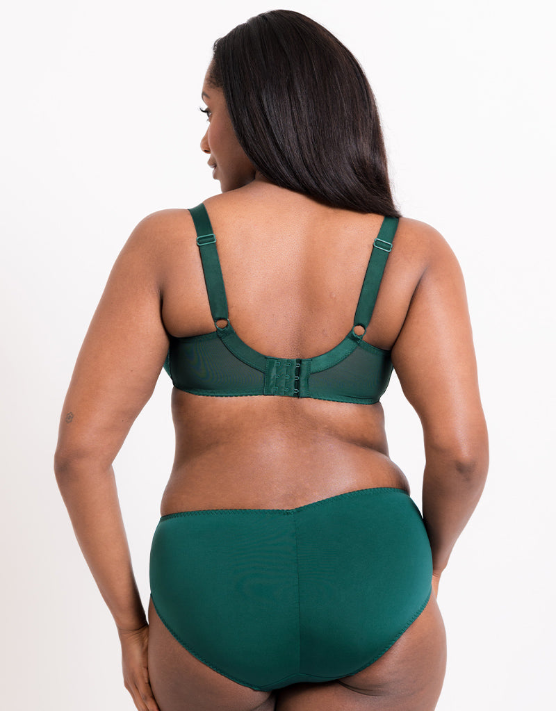 Flirtelle's Swirl balcony bra is always a favourite thanks to its fabulous fit and all-day support, and we just love this deep emerald green colour! 3-part mesh cups lift and shape up to a K cup, with a buttery soft microfibre outer to give a super smooth fit. Trimmed with top cup embroidery detail and finished with 22mm wide, non-slip shoulder straps to ensure maximum comfort.