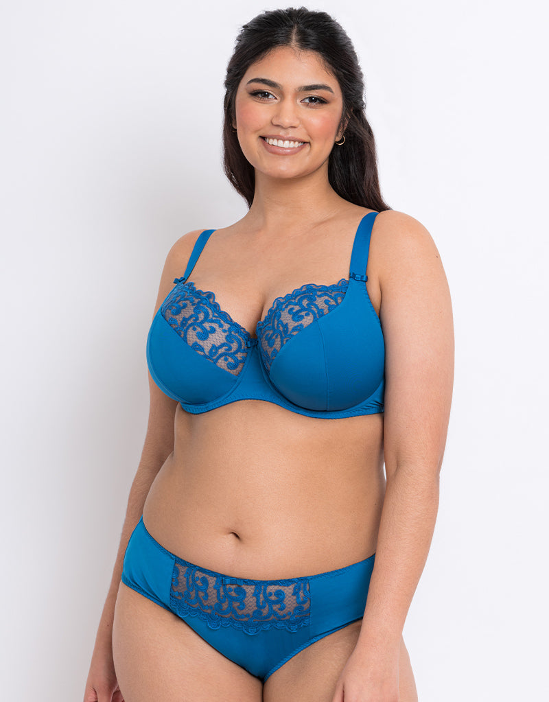 The Flirtelle Swirl balcony bra is a bestseller season after season, and we're obsessed with the latest marine blue colourway! Designed with a 3-part cup that gives a projected and rounded shape in F-K cups, with a non-stretch mesh lining and silky-soft microfibre outer for a smooth fit. Wide, non-slip shoulder straps and a power-mesh back band ensure a comfortable fit that stays put all day long.