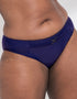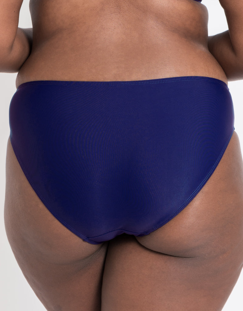 Flirtelle's Verona Beach classic bikini brief offers easy holiday style in a modern navy blue. With a lower rise waist you can still get your best tan on, while the fuller rear coverage shape keeps you feeling secure and confident all day long. Trimmed with a chic waist belt detail featuring a chunky metallic black charm to match the rest of the collection.