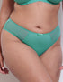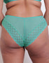 Flirtelle's Viola Geo brazilian brief brings everyday comfort and style in a bold bright teal hue. Made from soft abstract mesh and lace for a perfect everyday fit, with lower coverage but maximum comfort.
