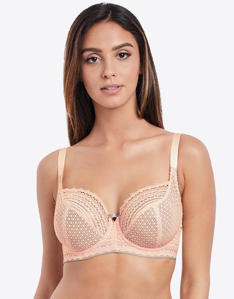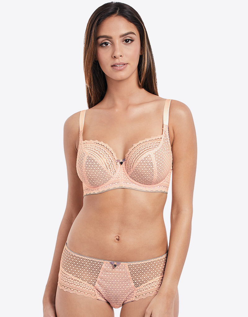 The Freya Daisy Lace balconette bra will have you feeling fabulous all day, every day! The blush tone is super pretty, with geometric stretch lace for a comfortable fit that moulds to your shape. The balconette cups offer great coverage and comfort, with support coming from the underwires, laminated bottom cups and three part structure. GG+ cups feature wider straps and deeper wires to reinforce the support in larger cup sizes.