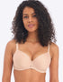 Revive your lingerie basics with the Freya Signature moulded spacer. This natural beige hue is a lovely warm neutral, with seam-free cups to give a smooth silhouette for everyday wear. A breathable, lightweight spacer foam cup design gives a sleek shape with a sweetheart neckline for moderate coverage and a secure fit with great shape, without adding bulk or volume to your chest. Trimmed with beautiful lace at the cradle and a gold charm at the centre front, and fully adjustable straps.