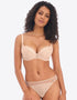 For that perfect everyday style, look no further than the Freya Signature padded plunge bra in natural beige. The cups are lined wit a thin, light foam to give great shape, in a 3-part structure to provide uplift and projection with a low plunging neckline. Overlaid in a diamond mesh with scalloped edging for a pretty finish.