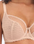 Give your basics a sassy update with the Freya Signature plunge bra in Natural Beige. Made from a supportive yet lightweight mesh with a stretch top cup to ensure a great fit in D-G cup sizes, in all-over small scale diamond mesh and scalloped edging. The gated back band allows for a thinner, lightweight feel while still offering good anchorage and support.