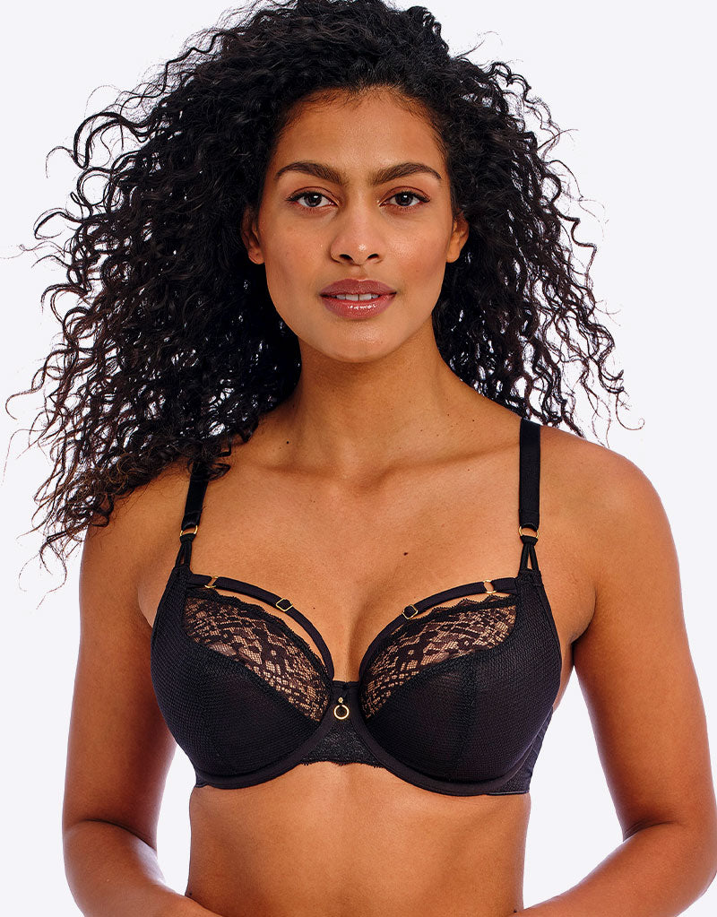 Style it out with the Temptress plunge bra from Freya. This black colour is timeless and easy to wear, designed with a bandless shape to provide extra comfort for those with shorter torsos and higher tummies.