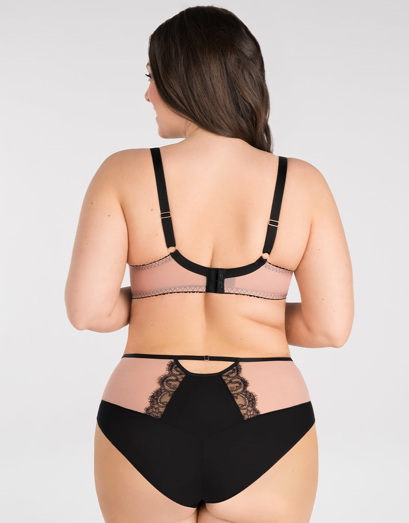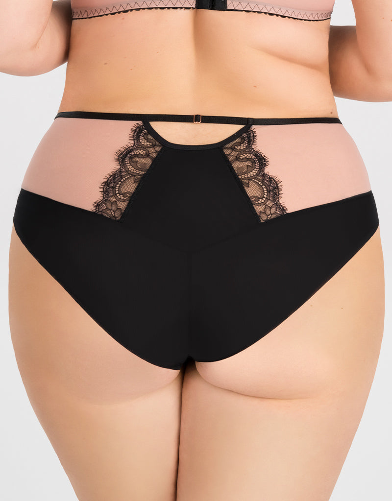 Gorsenia's Black to Black full brief is cut with a higher rise waist and a full bottom to ensure comfortable everyday wear, in a blend of soft microfibre and mesh. Trimmed with lace detail to match effortlessly back to the bra.