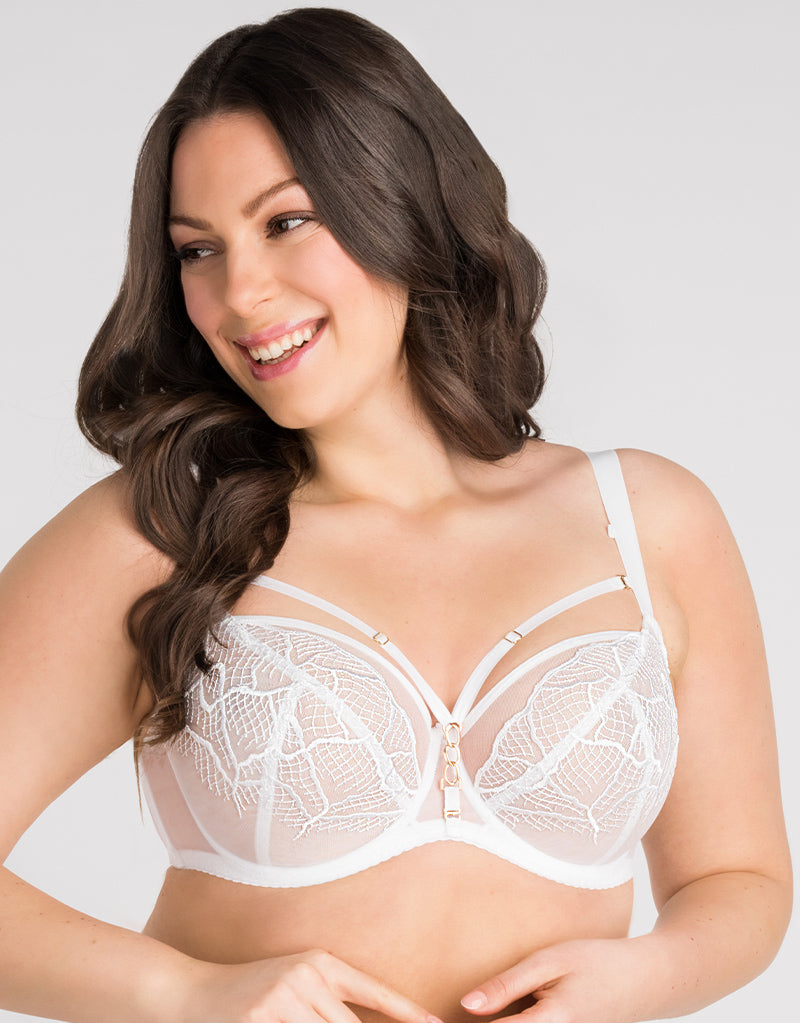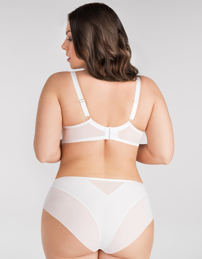 The Gorsenia Forever White balconette bra is beautiful with its lace and embroidery overlay on shee mesh cups. 3-part balcony cups give an uplifted and rounded shape to your bust, while giving that forward projection that Gorsenia bras are known and loved for.