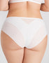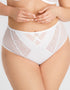 Gorsenia's Forever White full brief is beautifully styled in mesh, microfibre and lace. Cut to give added coverage with a higher waist and full bottom, the folded leg edges help to reduce VPL and keep you feeling comfortable.