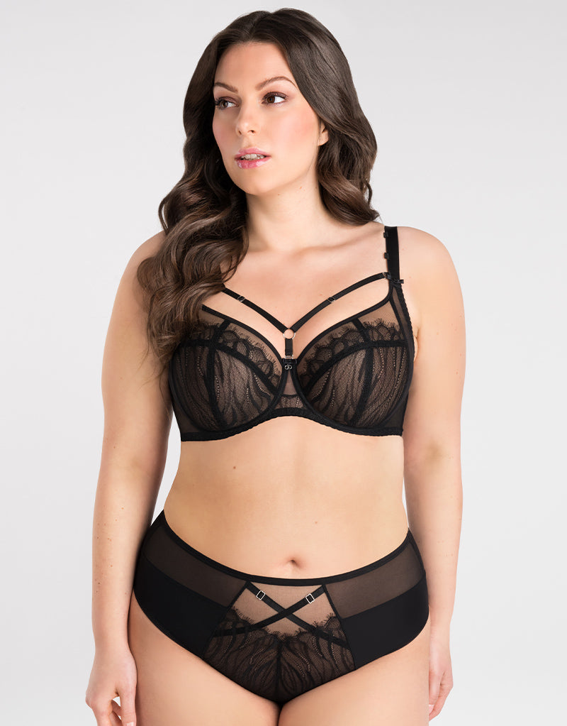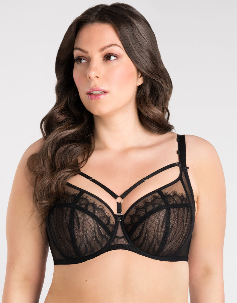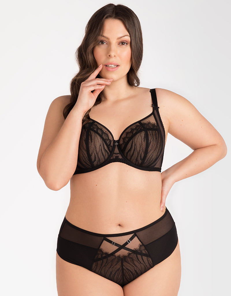 The Inessa full cup bra from Gorsenia is stylish and sexy in black, featuring a striking lace panel on top of the mesh cups. 4-part cups use side support to give an incredibly streamlined and projected shape, while giving a little more coverage and a supportive, uplifting fit. Overbust strap detail can be fully detached and has a slider for adjustability, with 3 points of attachment on the straps to create a range of looks.