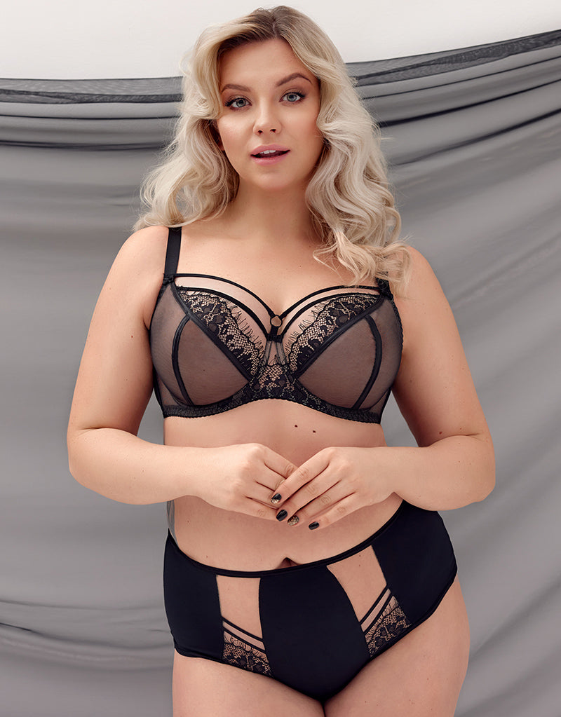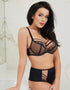 The Gorsenia Paradise bra is irresistible in classic black, combining timeless design with sexy features. Made from soft, sheer mesh it gives a sultry finish, with overbust strap detail and eyelash lace trims, all brought together with contrasting satin casing on the wires and seams. Cut in a simple 3-part balcony cup that offers moderate coverage with a projected shape and narrow underwires.
