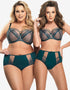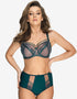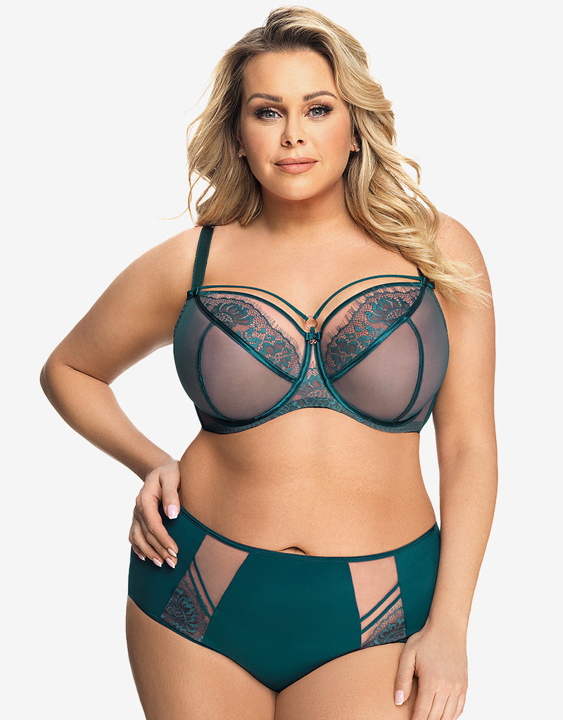 The Paradise bra from Gorsenia is stunning in a deep emerald green shade, made up of soft, sheer tulle and embroidery detailing. 3-part balcony cups ensure a comfortable fit with moderate coverage and a great shape, complete with harness detail to the overbust for added interest.