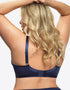 The Gorsenia Paradise bra is beautiful in a deep navy shade. Sheer mesh cups are non-stretch to give amazing support and shape while feeling lightweight against your skin, complete with eyelash lace trim and overbust strap detail. Made to give a narrow and projected shape that streamlines your silhouette and ensures your bust sits up-front and centred.