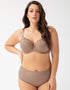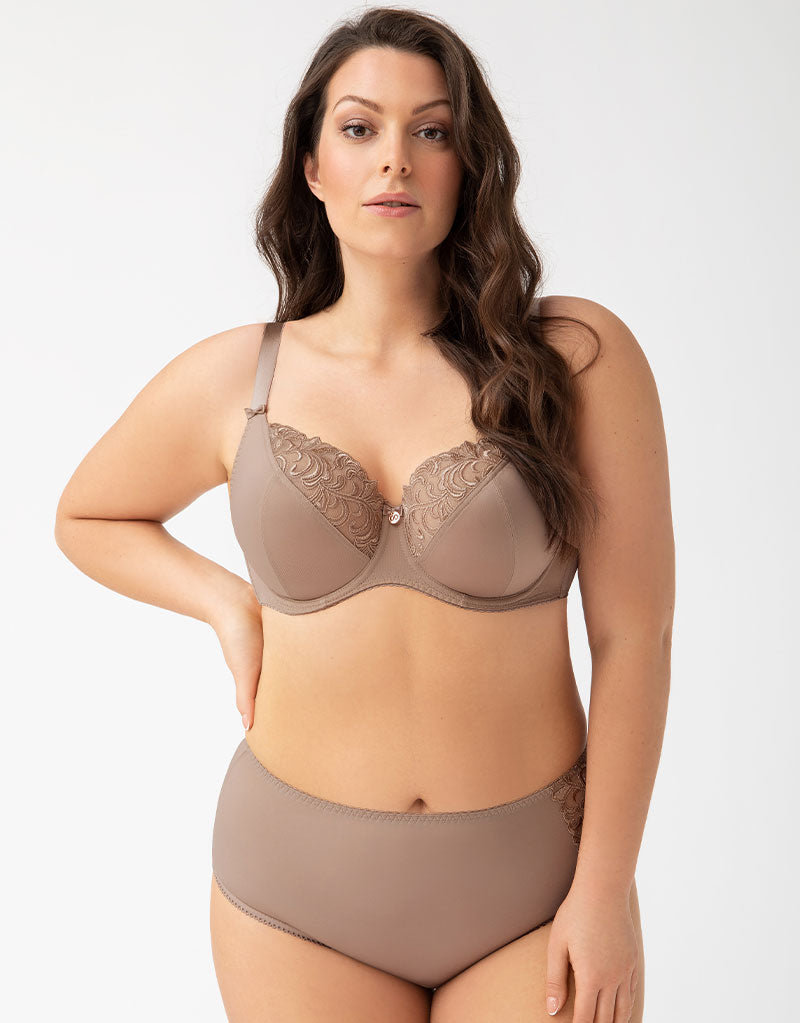Gorsenia's Victoria bra gives sophisticated style for everyday in a deep beige hue. The non-stretch bottom cups give great support and uplift, with a deep projected shape and fuller coverage cut. Finished with an embroidered top cup for a feminine, lightweight feel.