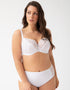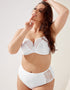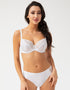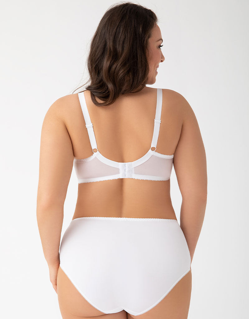 Get everyday style with the Gorsenia Victoria bra in white. Non-stretch bottom cups give great support and uplift, with a deep projected shape and fuller coverage cut. Finished with an embroidered top cup for a feminine, lightweight feel that suits any occasion.