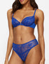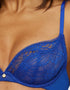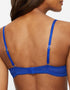 The KBX Alice non-padded plunge bra is bold and striking in a bright cobalt blue hue. Made from a soft floral lace which is comfortable and pretty, and trimmed with brushed gold hardware to elevate the look. The plunging neckline frames your cleavage perfectly, while the 3-part cups give great shape and support. Finished with a bandless design and fully adjustable straps for a comfortable fit.