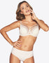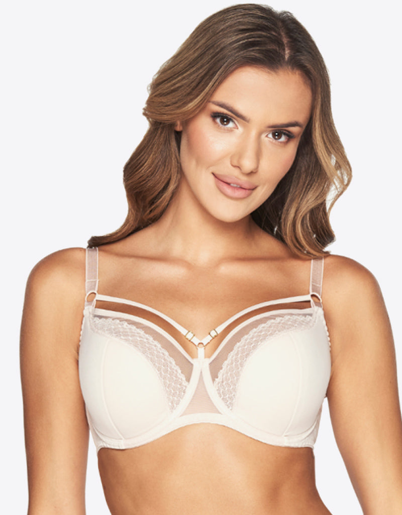 Style it out with the Kinga Isla semi-padded balconette bra in Ivory. Mesh and lace detail teamed with overbust strapping adds a stylish and sassy twist, while the foam lined bottom cups shape, lift and support D+ cup sizes without adding bulk or volume to your bust.