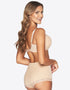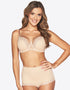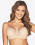 Kinga's Isla semi-padded balconette bra in latte is perfect for day to day wear with added style points. This classic beige bra gets a stylish twist thanks to the mesh and lace detail teamed with overbust strapping, while the foam lined bottom cups shape, lift and support D+ cup sizes without adding bulk or volume to your bust.