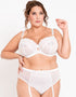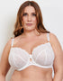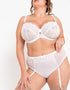 The Liaison Paris balcony bra in white brings sexy styling with its all-over lace cup, designed especially with fuller bust and fuller figured sizes in mind. Underwired cups have a supportive mesh lining to shape and lift, in a 3-part design that gives a great fit. Comfortable and easy to wear from day to night or for special occasions, trimmed with beautiful gold hardware.