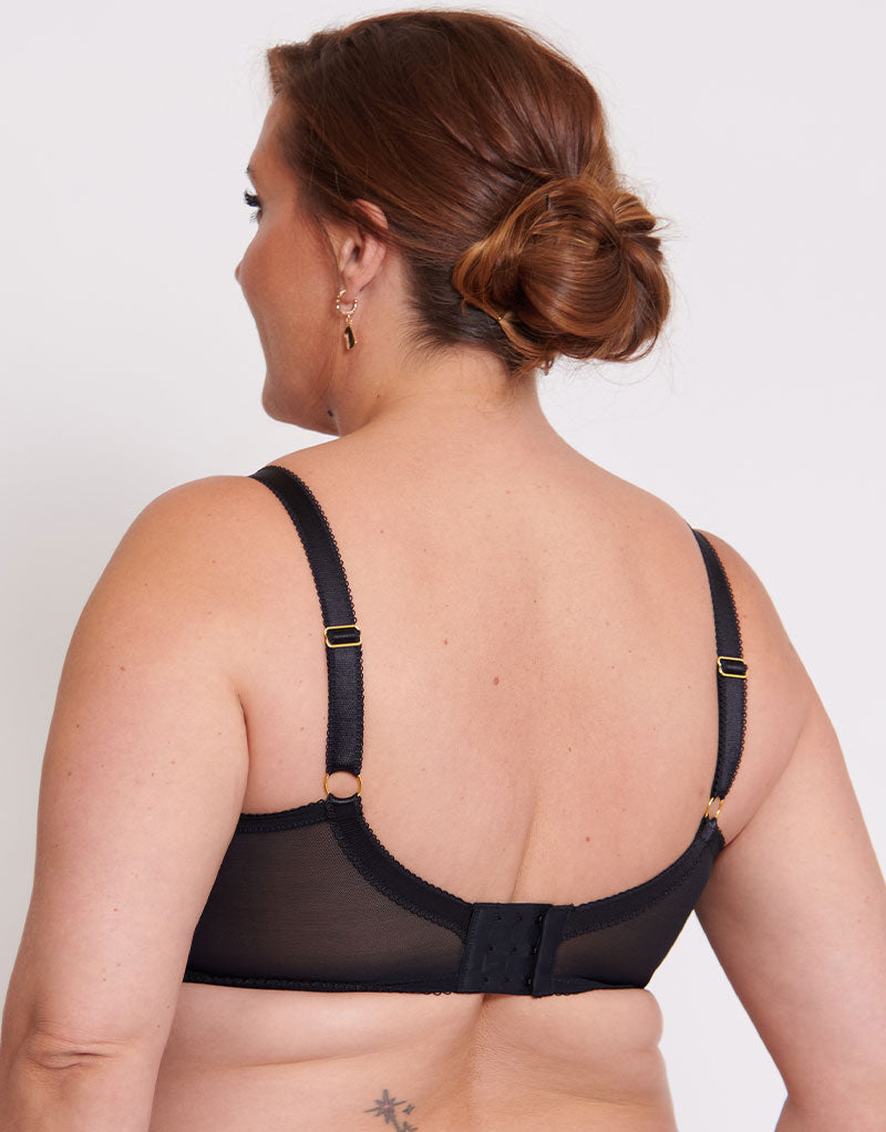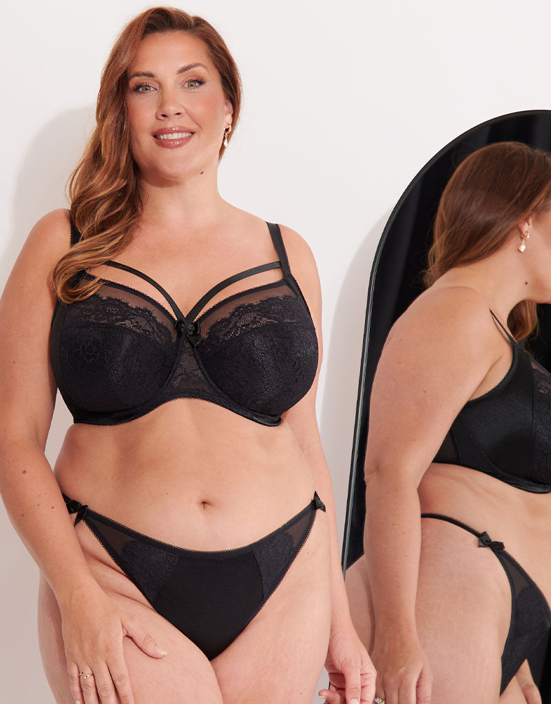 Level up your bra-drobe with the Liaison Sydney side support balcony bra, a stunning new addition to this Brastop exclusive lingerie range. The supportive cups offer a comfortable fit with good coverage, while side support panels give amazing shape and projection to fuller busts. Overbust strap detail contrasts the delicate lace design, while opaque bottom cups add modesty.