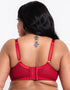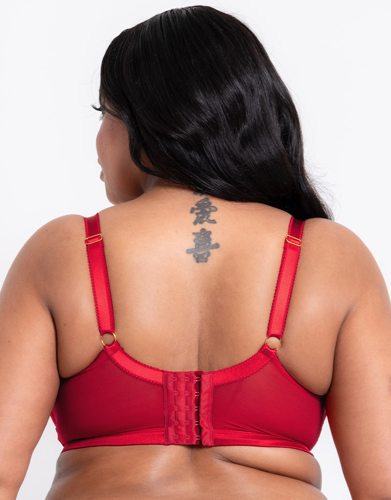 Show off your curves in Liaison's Vienna longline bra in red! Designed especially for fuller cup and fuller figured sizes, the longline band adds extra support and highlights your waistline while looking super chic and stylish. The foam lined cups shape, support and uplift your bust in a balconette shape without adding bulk, finished with a romantic lace overlay and bow detail. Perfect for both elevating your everyday outfits, or wearing on a special occasion.