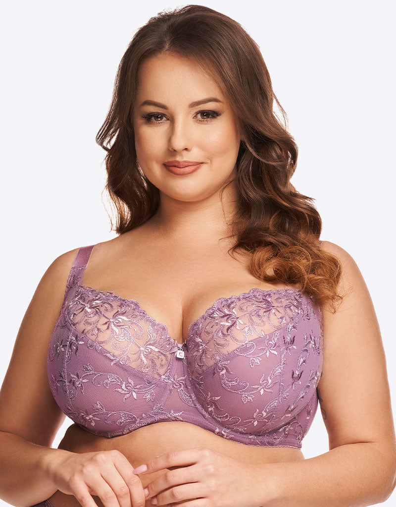 Nessa's Luiza balconette bra is gorgeous in a dusky heather purple. The non-padded, mesh cups are adorned with an intricate floral embroidery giving a multi-tonal effect, in a traditional 3-part cup construction for reliable fit, support and shape with comfort and coverage.