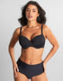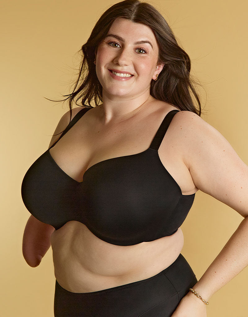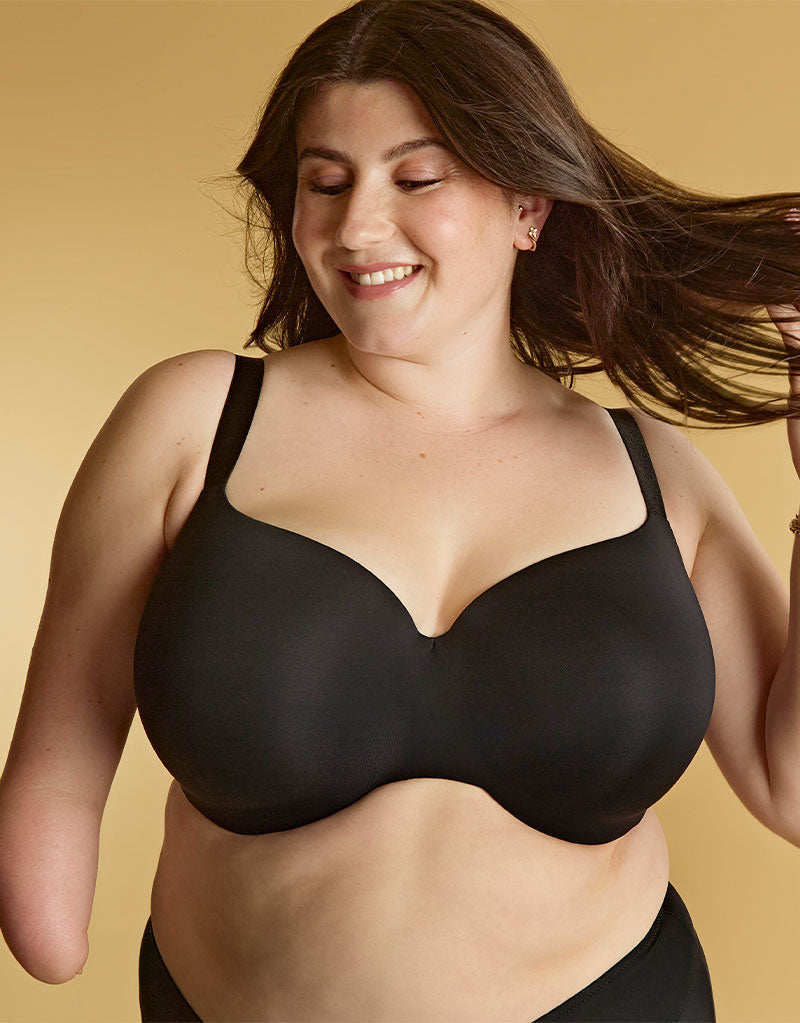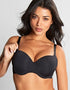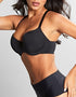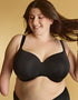 Get a smooth, sleek silhouette with the Panache 365 t-shirt bra, in classic black. Designed to celebrate your curves with lightly foam lined moulded cups, and bonded edges for a seam-free finish. Offering medium coverage with balconette shape cups, and finished with swan hooks on the straps to wear straight or crossed at the back. Contains recycled yarns.