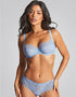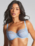 Panache's Allure balcony bra is pretty in a pale bluebell hue, offering everyday luxury with a little less coverage. The 4-part cups provide fantastic shape with this new balcony cut, giving a true shelf-like lift and forward projection thanks to the inner cup sling. Complete with stretch lace top cups and a lined, non-stretch bottom cup to give a flexible and supportive fit, using recycled yarns throughout multiple elements.