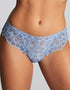 Complete your set with the Panache Allure brazilian brief in Bluebell. This low rise knicker option sits comfortably on the hips, offering lower bottom coverage with striking floral lace, containing recycled fibres and elastics.