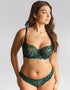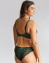 Panache's Allure brazilian brief is a perfect match in Forest Green. This low rise knicker option sits comfortably on the hip, offering lower coverage with striking lace design.