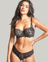 Complete your everyday style with the Allure brazilian brief from Panache. This low rise knicker option sits comfortably on your hip, offering lower bottom coverage with striking black lace and contrast latte toned lining. Contains recycled elastics and lace.