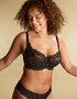 Say hello to Allure - a beautiful new core style from Panache lingerie. This stunning lace full cup bra offers perfect support and coverage for fuller busts, in timeless black with a contrasting latte coloured lining to enhance the visual appeal. Stretch lace top cups offer a flexible fit that moves with you, allowing for gentle size fluctuations and comfort for asymmetrical breasts. An inner sling made from stabiliser fabric offers a forward shape to your bust, with an uplifted and rounded shape.