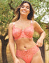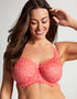 Panache's Allure full cup bra is back in a beautiful coral hue. The soft, stretch floral lace offers a comfortable fit that moves with your curves, while an inner side sling made from stabiliser fabric provides uplift and support.