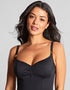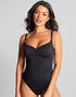 The Panache Anya Riva swimsuit is a chic one-piece option, exuding elegance and class. Concealed underwired cups offer full D+ support and comfort, with flattering gathered detail at the front. Finished with luxe gold detail on the straps and a plastic clasp back.