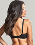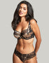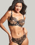 Upgrade your bra-drobe with the Panache Clara full cup bra in stunning black/vintage gold. This iconic, well-loved fuller bust bra brings elegance and style, with a subtle shine to the fabric and a delicate floral lace overlay. The fuller coverage cups provide a supportive and secure fit, made from a 3-part structure and stretch lace top cups for ease of fit, with concealed inner side sling which adds forward projection and gives a great shape under clothes.