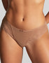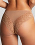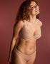 The Panache Envy brazilian brief is gorgeous in a houndstooth jacquard fabric and stretch floral lace, offering the most comfortable everyday fit with elegant styling in a warm honey tone.